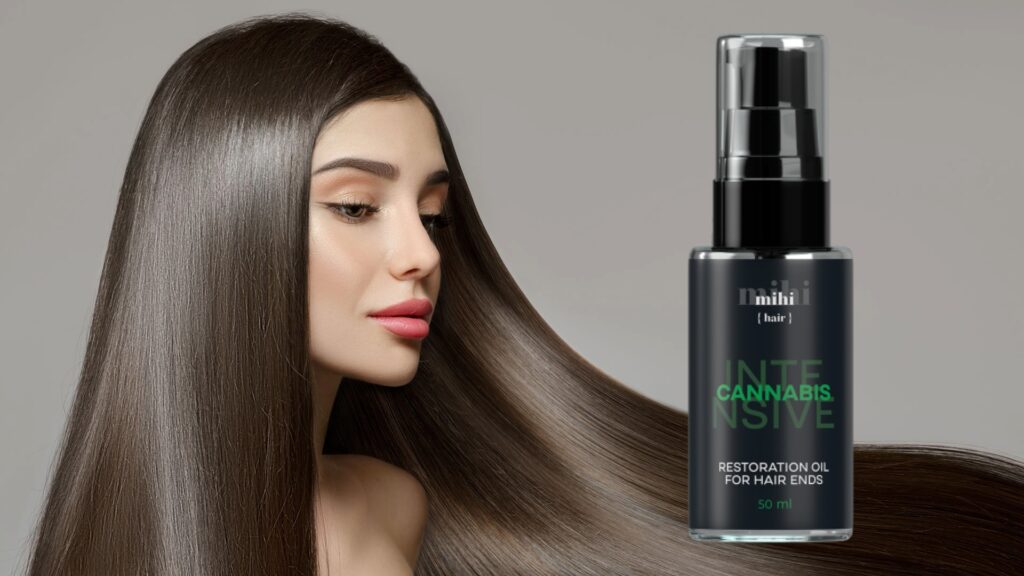 - Olej konopny odbudowuje strukturę zniszczonych włosów, nawilża i odżywia, zmniejsza łamliwość i rozdwajanie, sprawiając, że włosy stają się elastyczne i podatne na układanie.